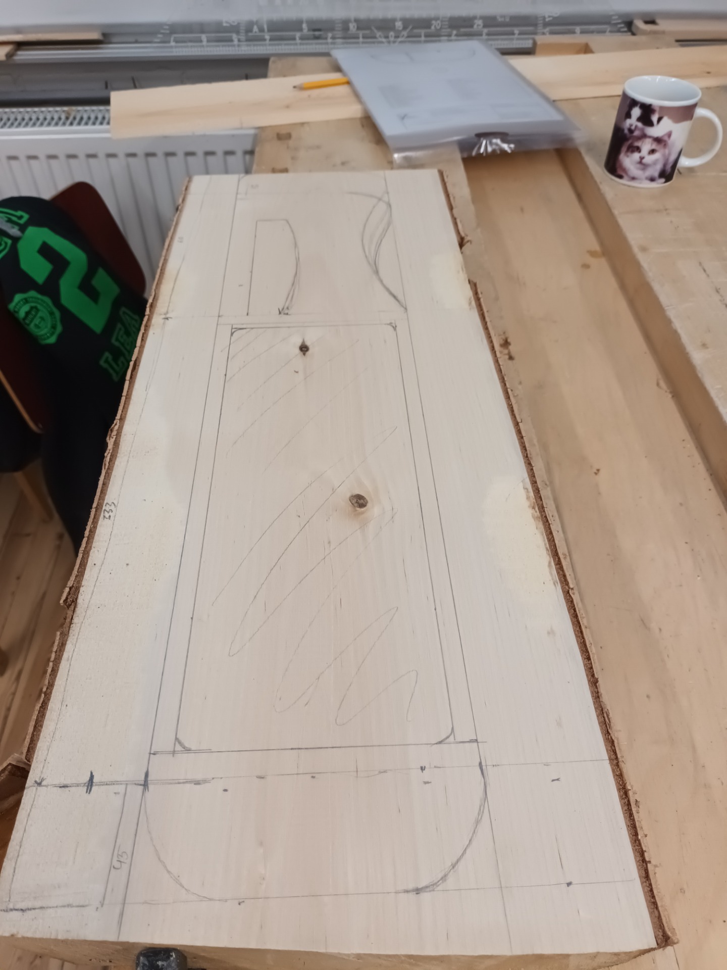 Aloitin jouhikon rakentamisen materiaalin valinnalla. Koska varastossa oli runsaasti hyvää koivua, ajattelin että miksipä soitinta ei voisi tehdä koivusta. Niitähän täällä on kasvanut iät ja ajat. Olin kuullut, että kanteleita on rakennettu saatavilla olleista kotimaisista puista ja ajattelin, että näin voimme toimia nytkin. Piirustuksissa oli mainittu erikseen tervaleppä soittimen kopaksi soveltuvana materiaalina, mutta minulla ei ollut sitä. Jälkeenpäin selvisi, että piirustuksissa mainitaan terveleppä erityisesti siksi, että se soveltuu soittimeksi koivua paremmin.