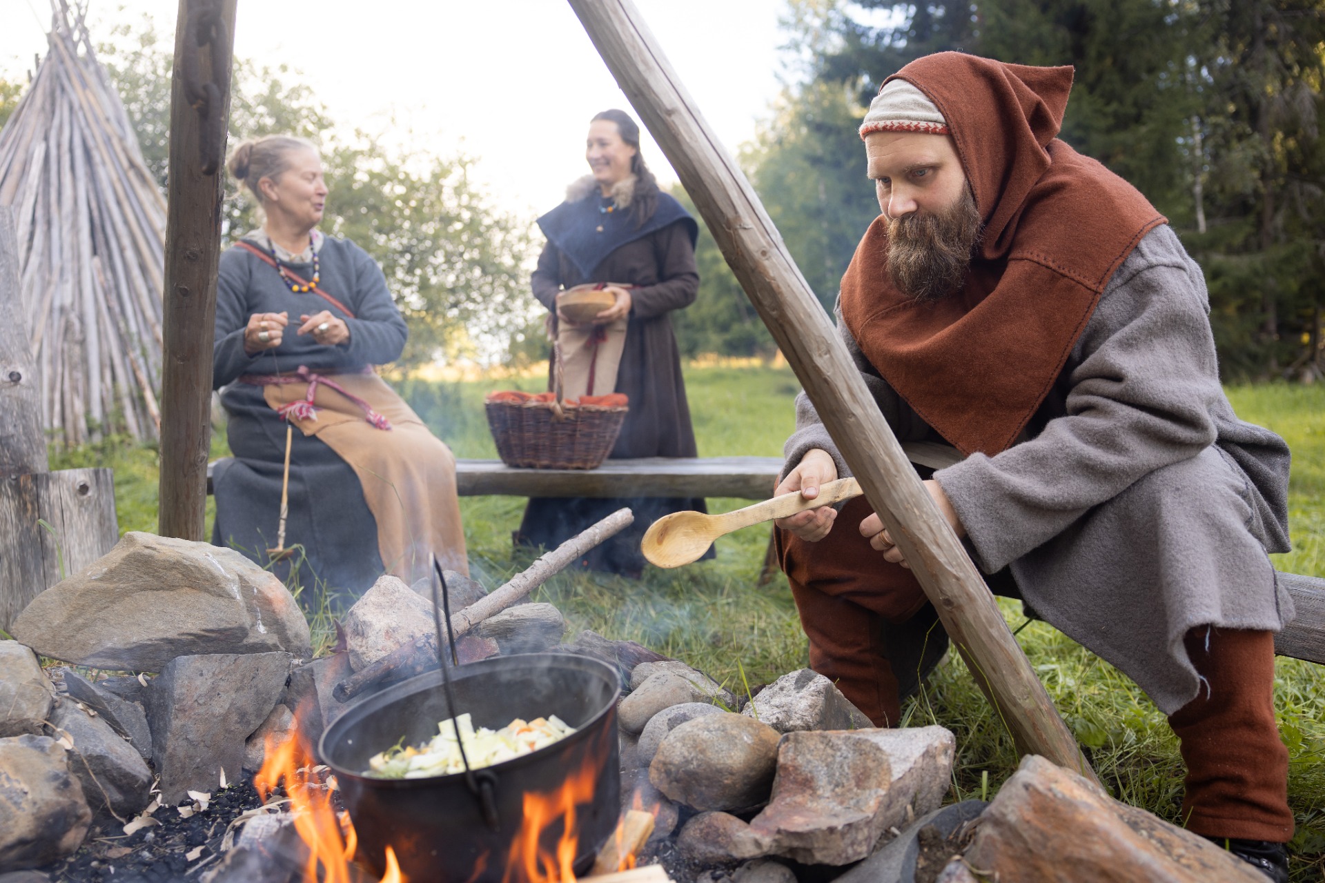 Kylällä on valmiina nuotiopaikka, keittokota, turvekattoinen hirsipirtti, ruokokattoinen kuoppatalo, varastolato. Kylän pientä kasvimaata ympäröi risuaita. Viljeltävät kasvit ja yrtit ovat jo tuhat vuotta sitten Suomen alueella kasvaneita, kuten härkäpapu ja kaskinauris.
